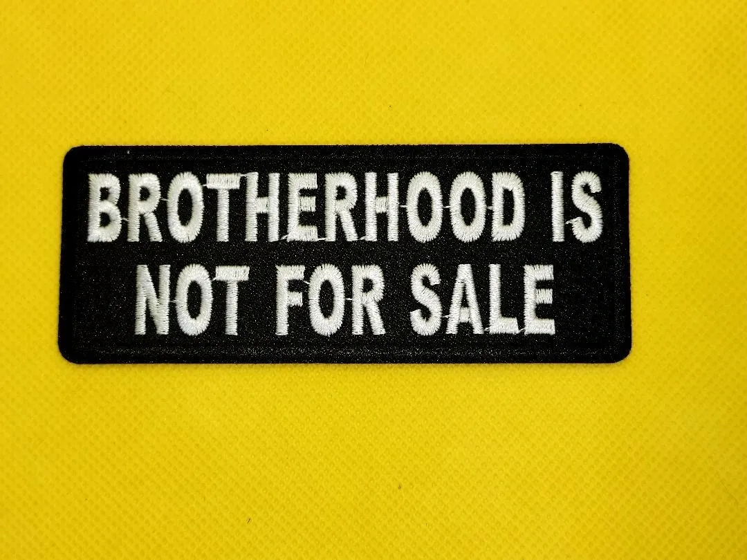 A great patch for men to show how valuable “brotherhood” is. 100% Rayon Thread Synthetic Embroidery. Plastic Backing with Japanese Iron on Glue. Twill Fabric. 4″x1.5″