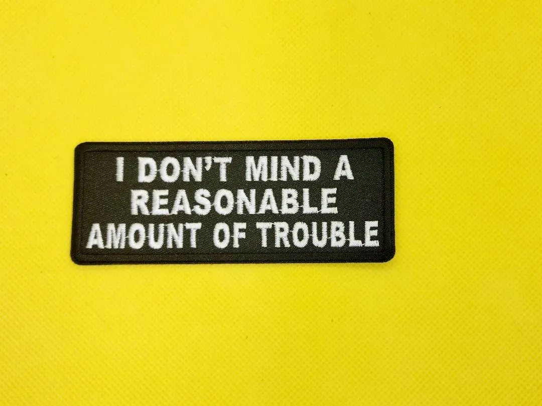 A humorous and naughty (implied) patch explaining yourself. 100% Rayon Thread Synthetic Embroidery. Plastic Backing with Japanese Iron on Glue. Twill Fabric. 4″x1.5″
